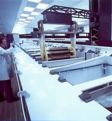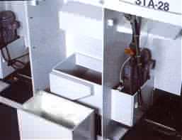 Our technology brought a new level of precision to the automatic monitoring and replenishment of sensitive chemical processes and to the high speed (but gentle) robotic handling of a variety of products. Our initial focus was printed circuit board plating and wafer (semiconductor) fabrication equipment. By 1982 the personal computer industry desperately needed hard disk drives and one of the leading providers of the discs inside hard drives, Ampex, contracted with us to develop the first automatic (electroless nickel/cobalt) disc system ever made. Using multiple Z80 microcomputers in a network, our system monitored and controlled virtually every complex variable in the manufacturing of plated discs. Our first disc system, sold for over $500,000.00 and (shown below) produced about 18,000 discs a day.